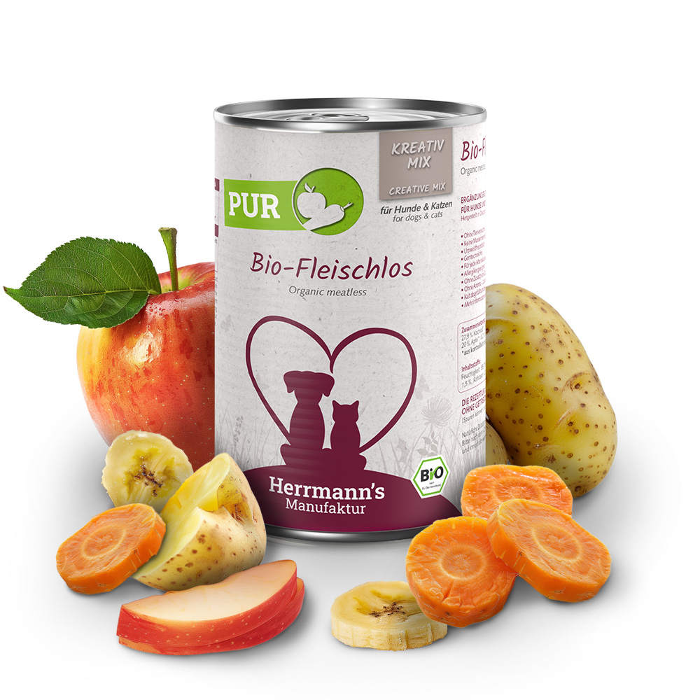 Seit 2006 produziert Herrmann´s Manufaktur Bio-Tiernahrung mit Herz und Hand. Aus Respekt vor dem Nutztier wird das Fleisch aus Bio-Haltung, artgerechter Weidehaltung oder direkt aus der freien Natur bezogen. Das Obst und Gemüse stammt zu 100 % aus kontrolliert ökologischer Landwirtschaft.